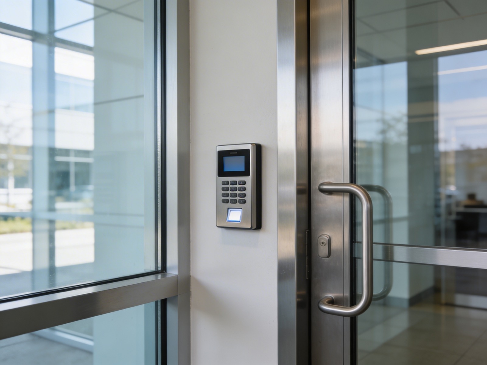 Installed professional-grade access control reader integrated with secure entry system. Deployment enhances controlled access while maintaining modern building aesthetics.