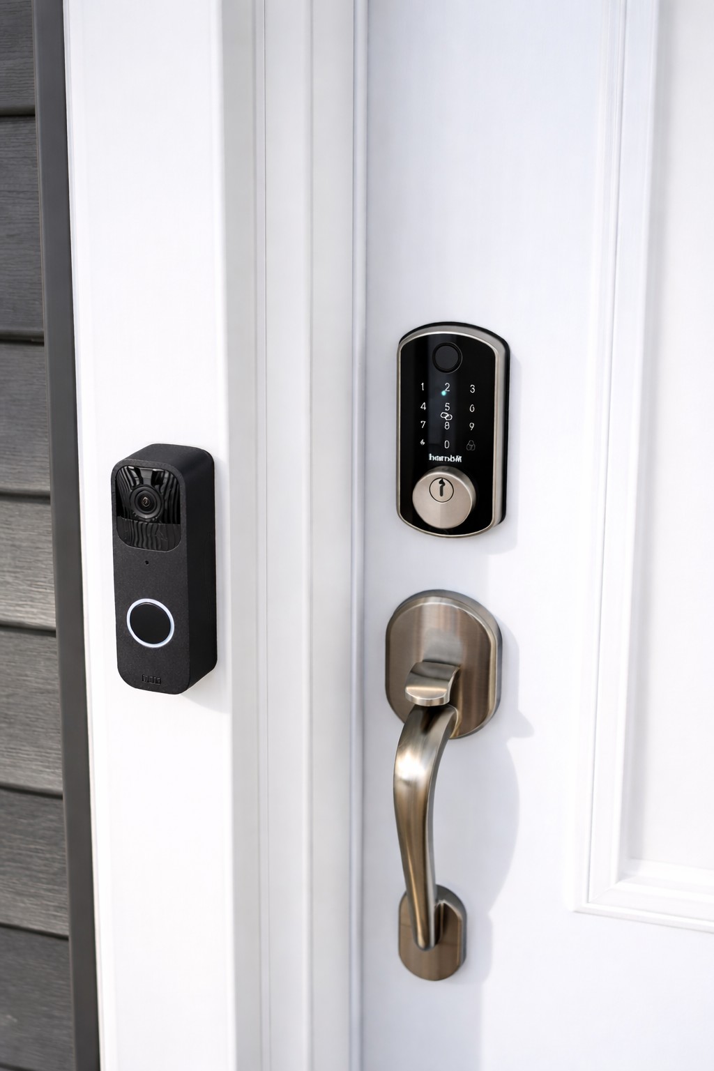 Installed modern smart lock system with precise hardware alignment and secure configuration. Upgrade enhances property security while providing convenient digital access management.